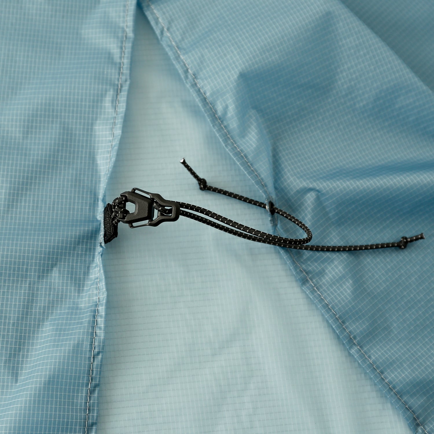 ポンチョとして使う時は、ウエストではなく肩の上あたりでコードを絞れば、上半身やバックパックを雨から防げます。