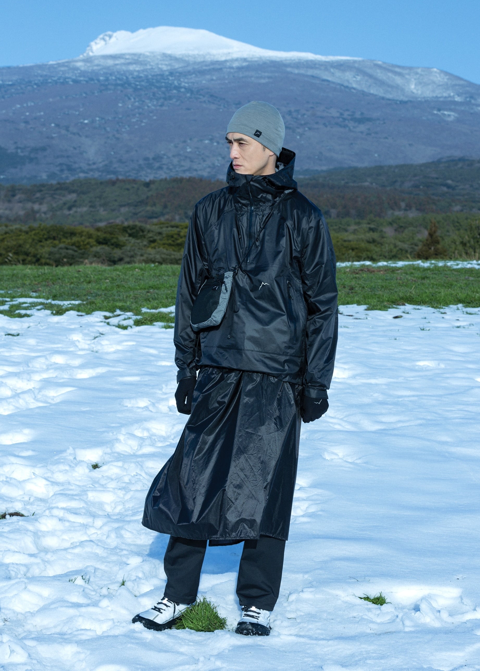 CAYL『Hiking Skirt』は、レインスカートだけでなく、ポンチョのようにも着用できるユニークなアイテム。