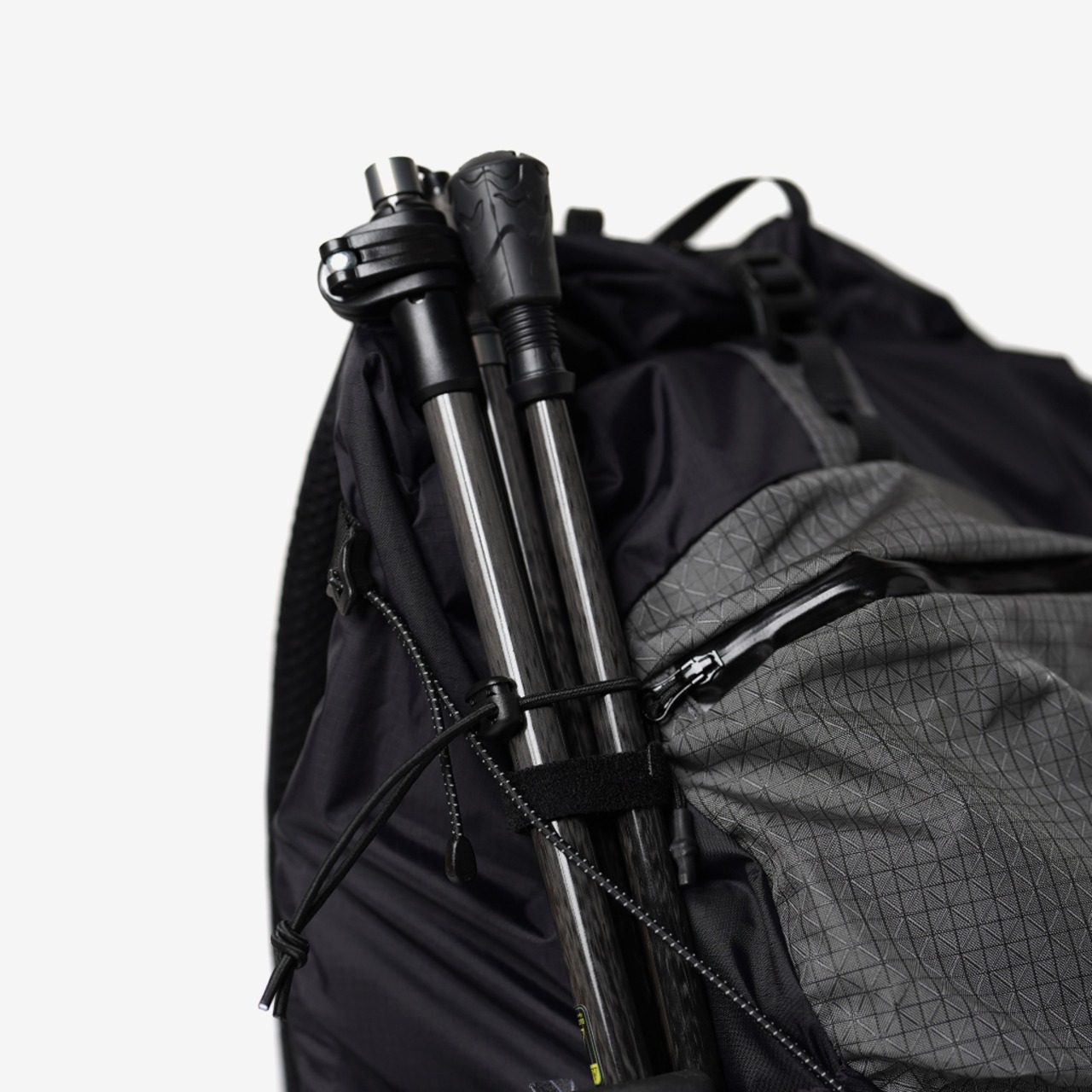 上部のバンジーコードを活用して、トレッキングポールや傘など長物の固定もできます。