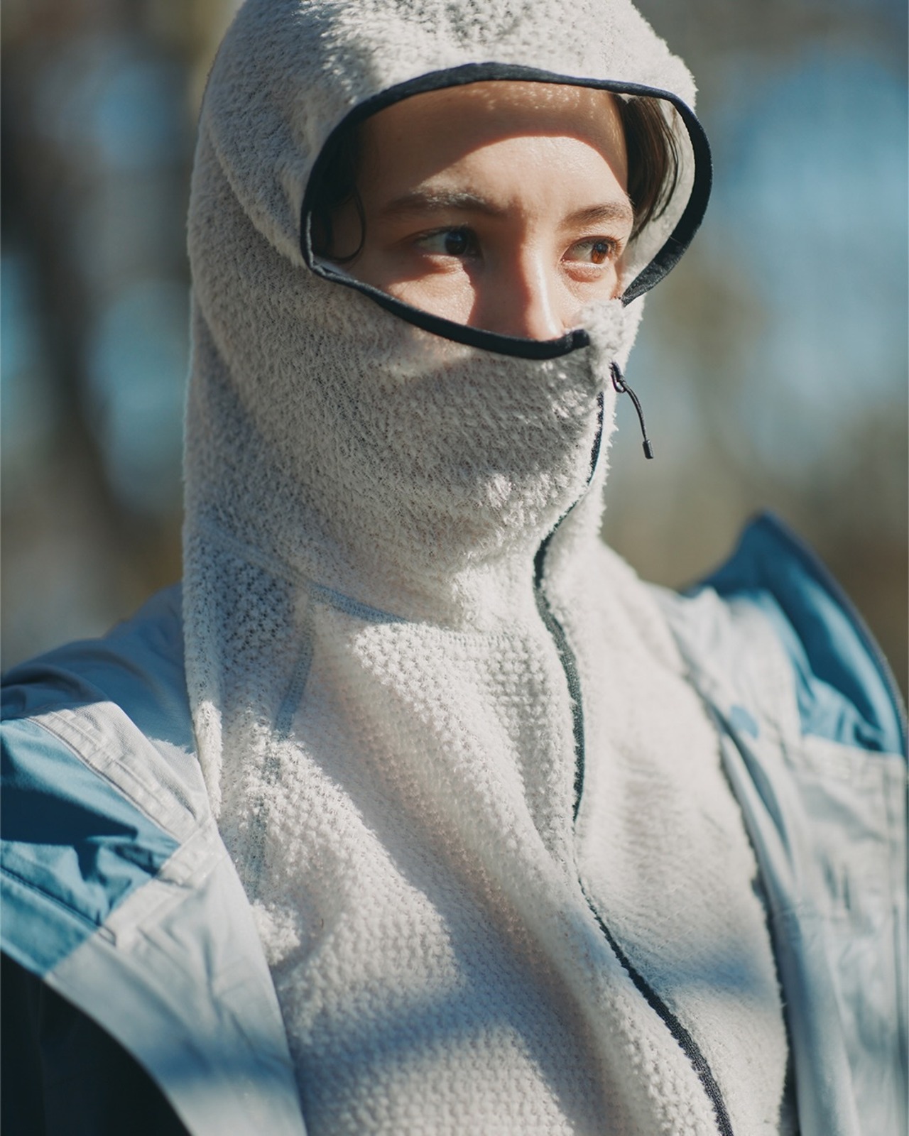 袖口のサムホールは手首まで保温してくれ、裾はコードで絞れます。