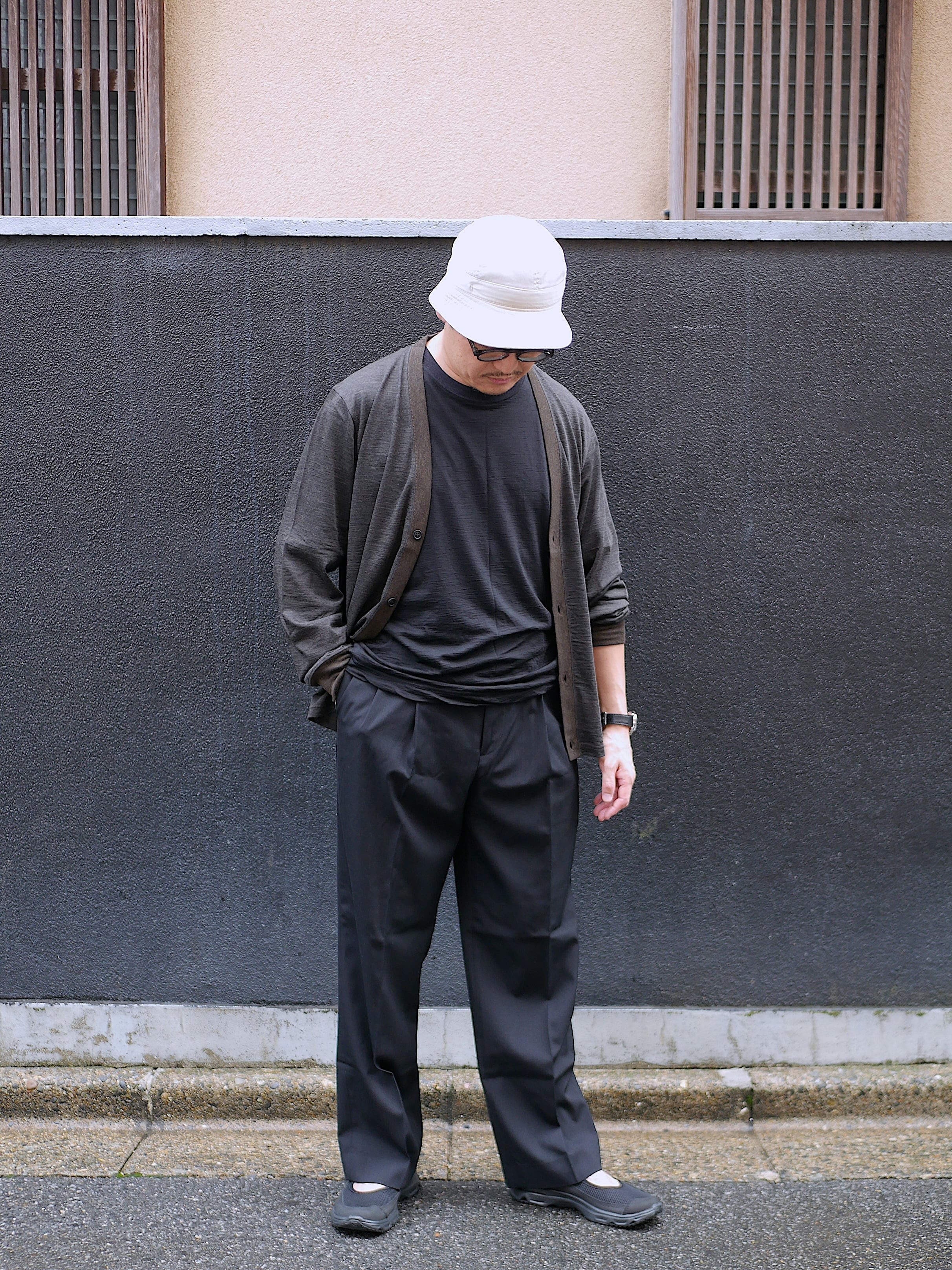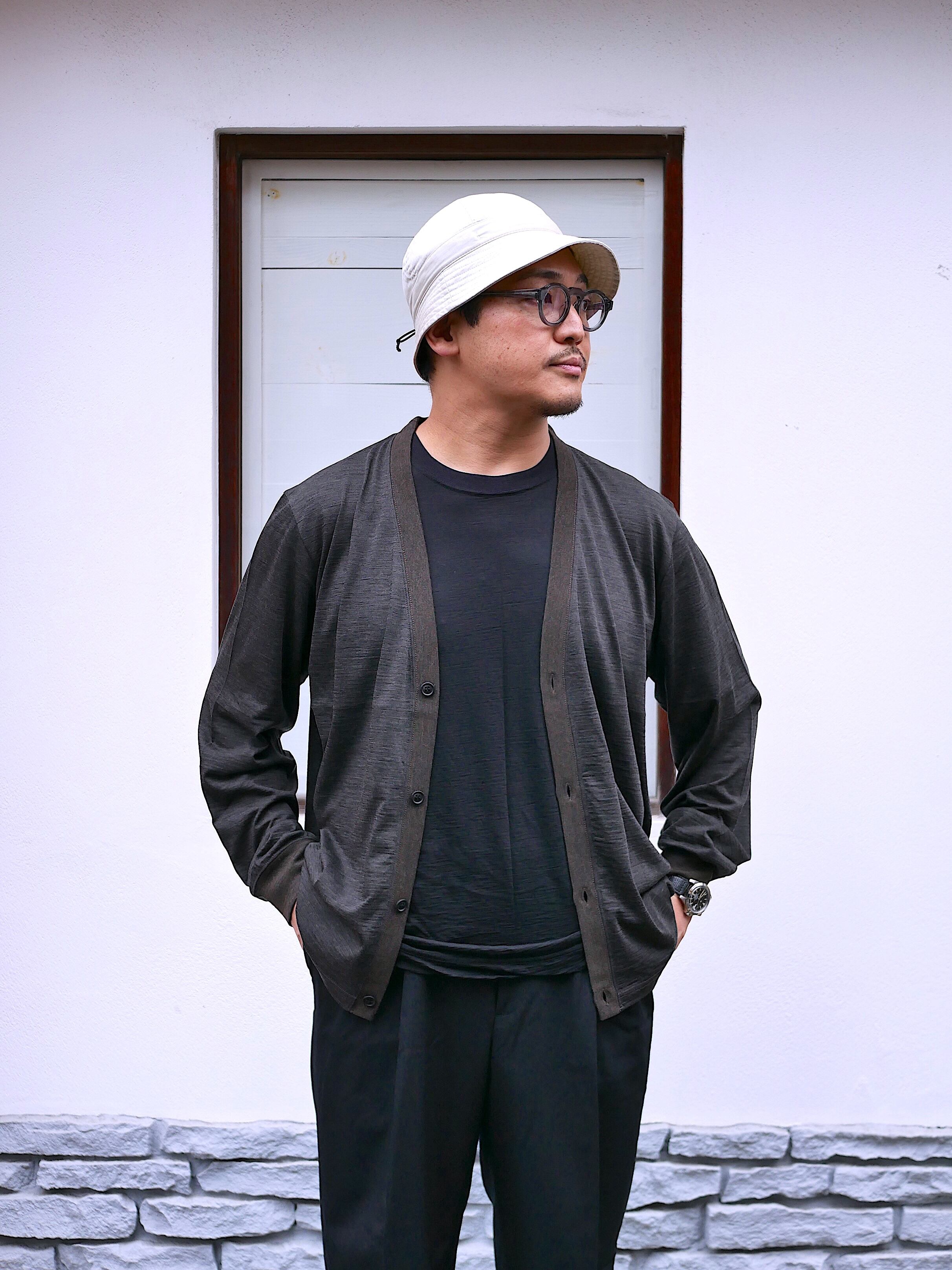 さらりと着れて、脱ぎ着も楽なカーディガンで、ミッドレイヤー的な使い方も可能なアイテム。