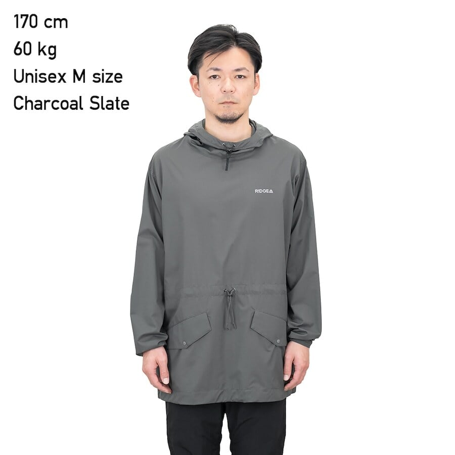 着丈はやや長め。RIDGE MOUNTAIN GEARのシャツの上から被っても、裾がのぞきにくく、レイヤーの境目が表に出ません。見た目がすっきり整うだけでなく、歩行中にシャツ裾がずり上がったり、バックパックのウエストベルトに引っかかったりしにくいのも利点です。結果として、前から見たラインも横からのシルエットもフラットに保てます。