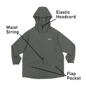 スモックタイプの最大の特徴の一つは、フロントファスナーがないために軽量化が実現されている点です。一般的に、フルジップやハーフジップのデザインではファスナーやその補強パーツが必要となるため、どうしても重量が増してしまいます。しかし、スモックタイプはこれらのパーツを排除し、極力シンプルな構造を採用することで、軽量性を確保しています。