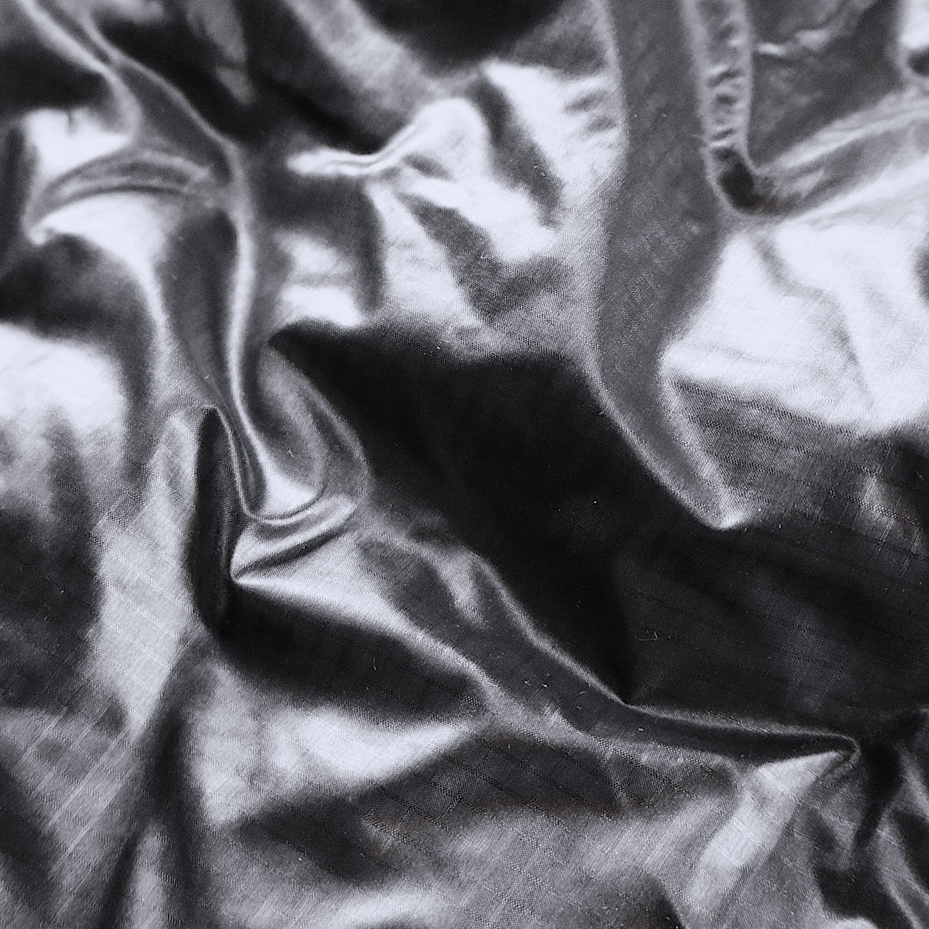 経糸・緯糸ともに15デニールのブライト超極細糸を使用することにより、薄くて軽く独特な光沢とナイロン特有の風合いを兼ね備えた超軽量な織物です。