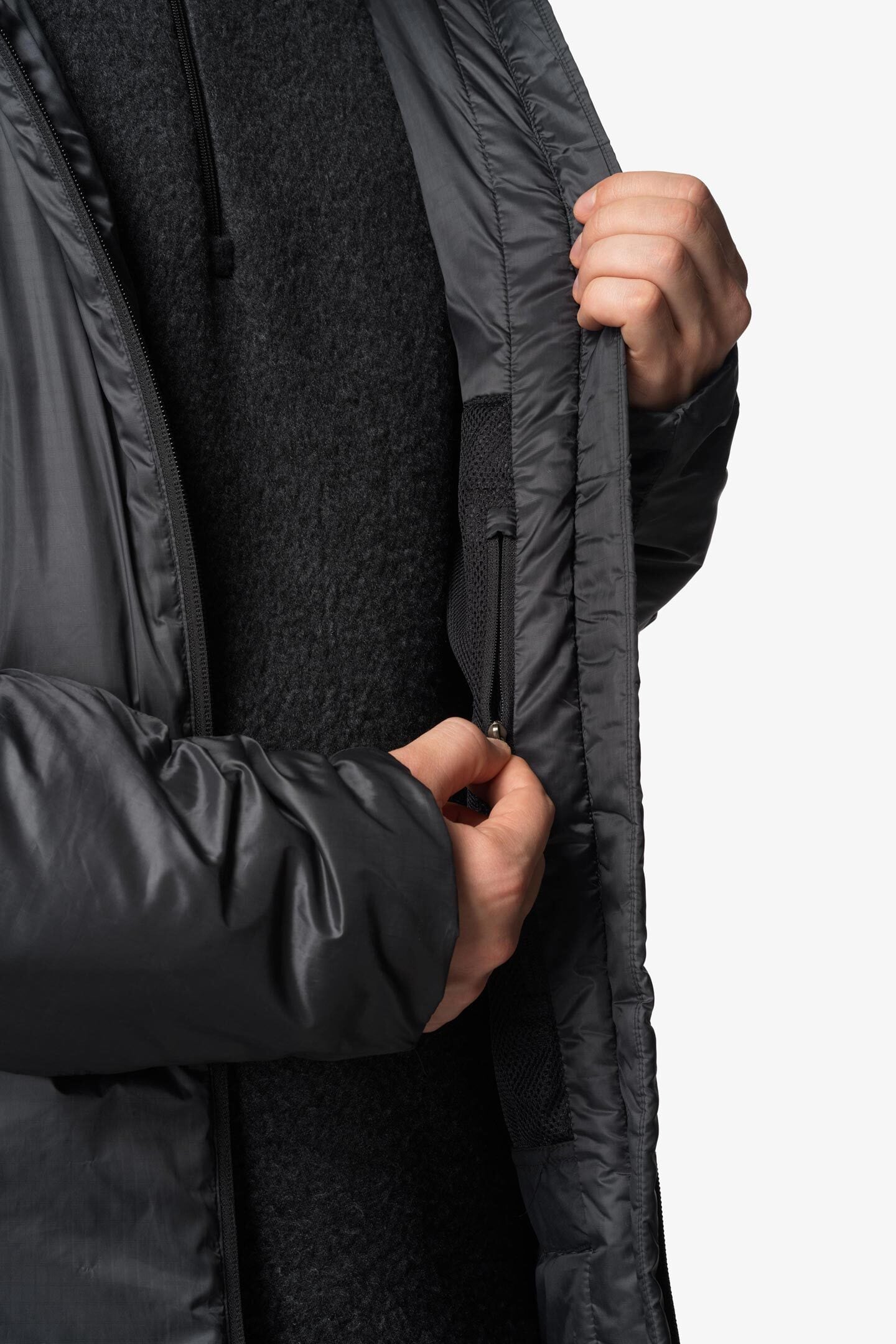 スウェーデン語で「ダウンフリー」を意味するDunfriは、その名の通りダウンやフェザーなど動物性の素材を排し、軽量で暖かく濡れても保温性を損なうことのない 100%リサイクルポリエステル製のPrimaLoft® Gold Insulationを中綿に採用しました。
