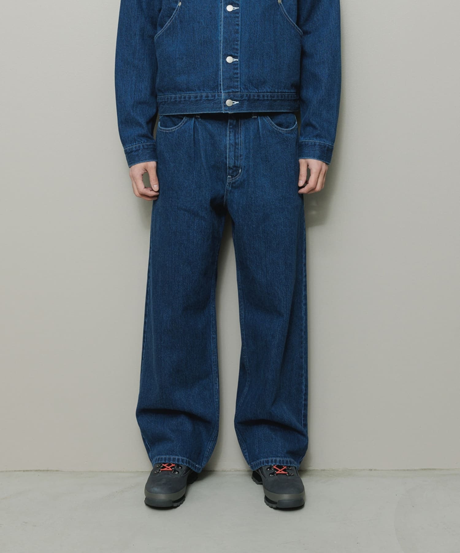 新型ストレートレッグのワイドシルエットの5ポケットジーンズ。