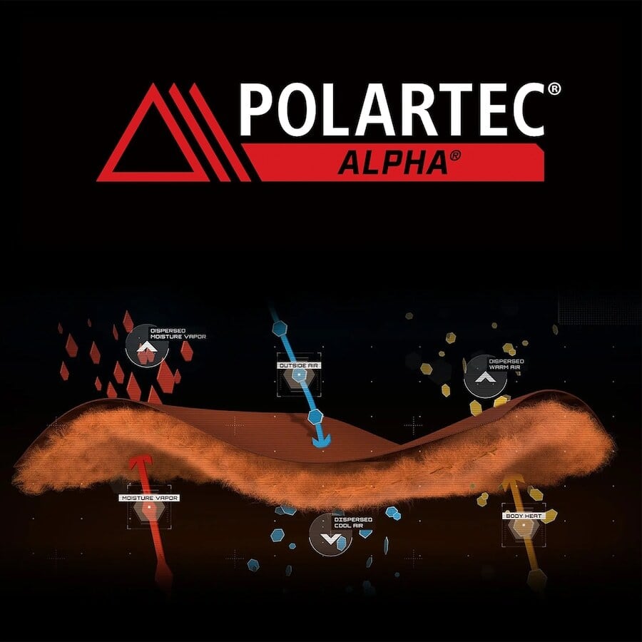 この製品にはPolartec® Alpha Direct 120(136g/㎡)を使用しています。