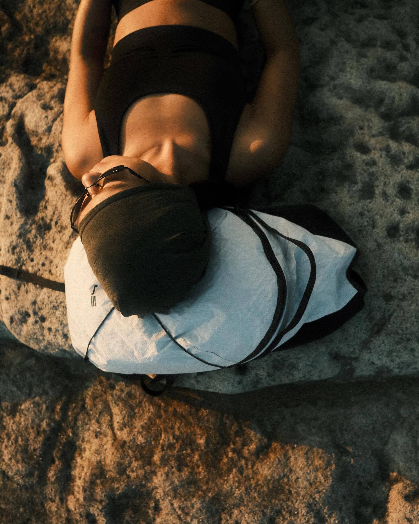 この軽量ナイロン素材は、台湾の生地メーカーであるSEALSON社とLIBOLON社が共同で開発しました。100% リサイクルナイロン糸を使用し、構造を強化するために黒のリップストップナイロン糸で補強されています。