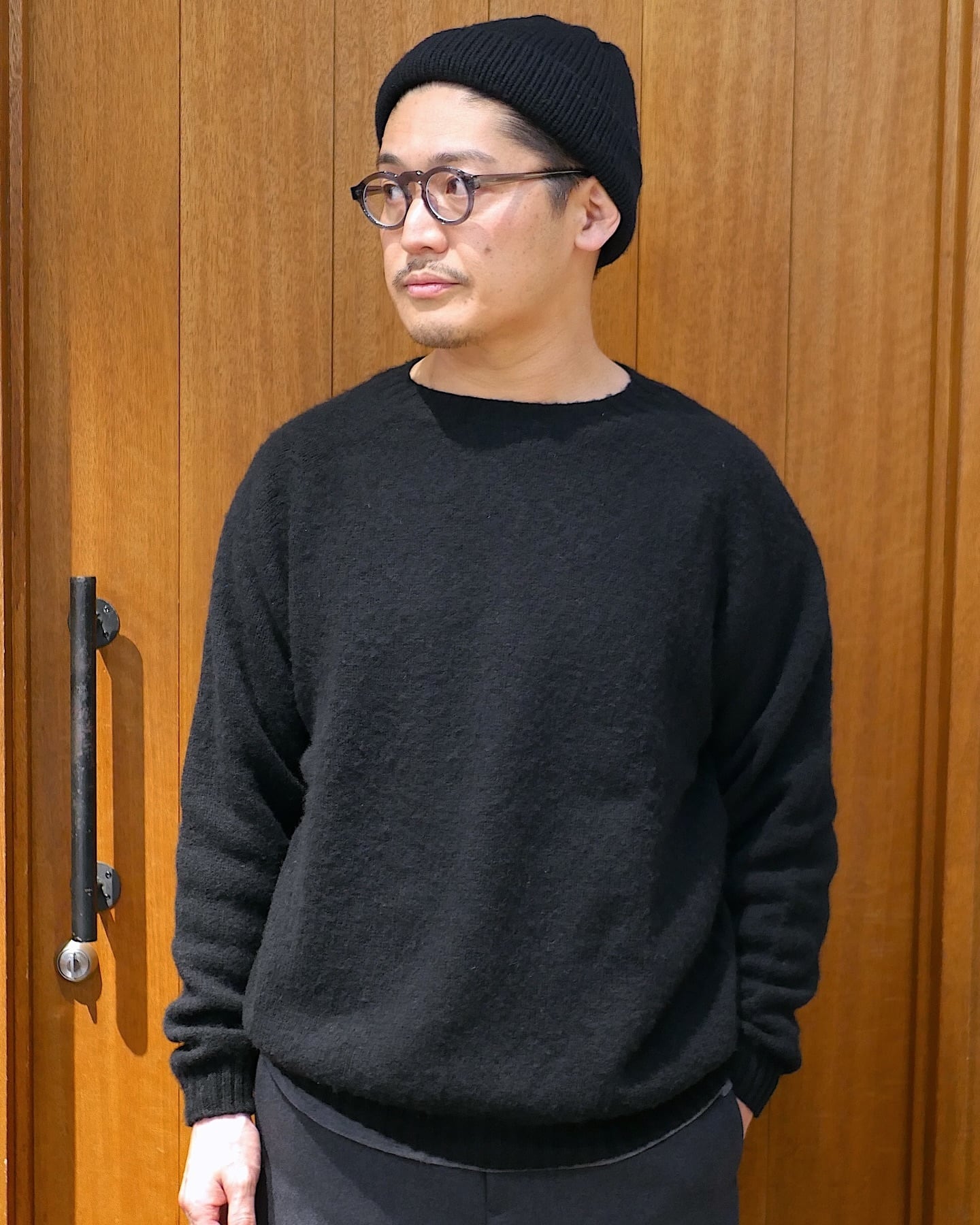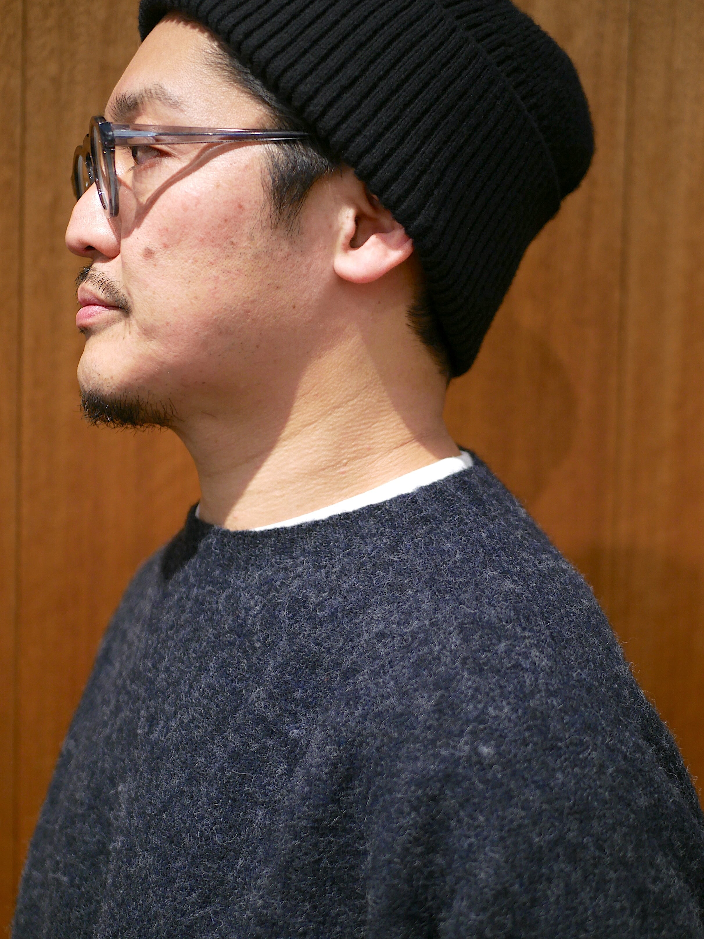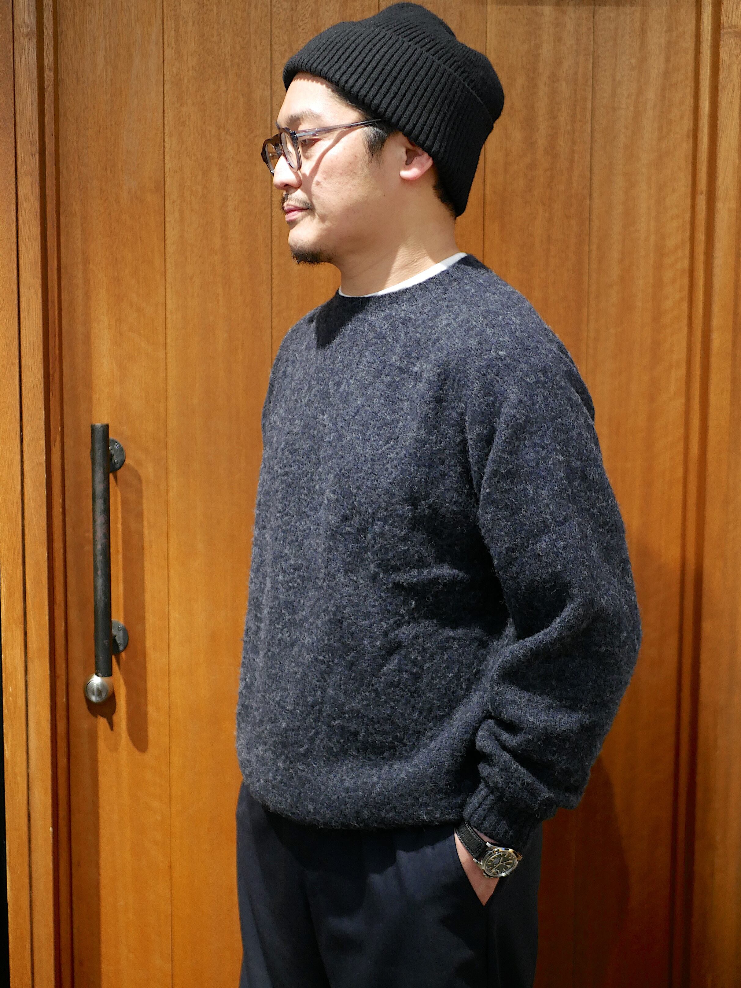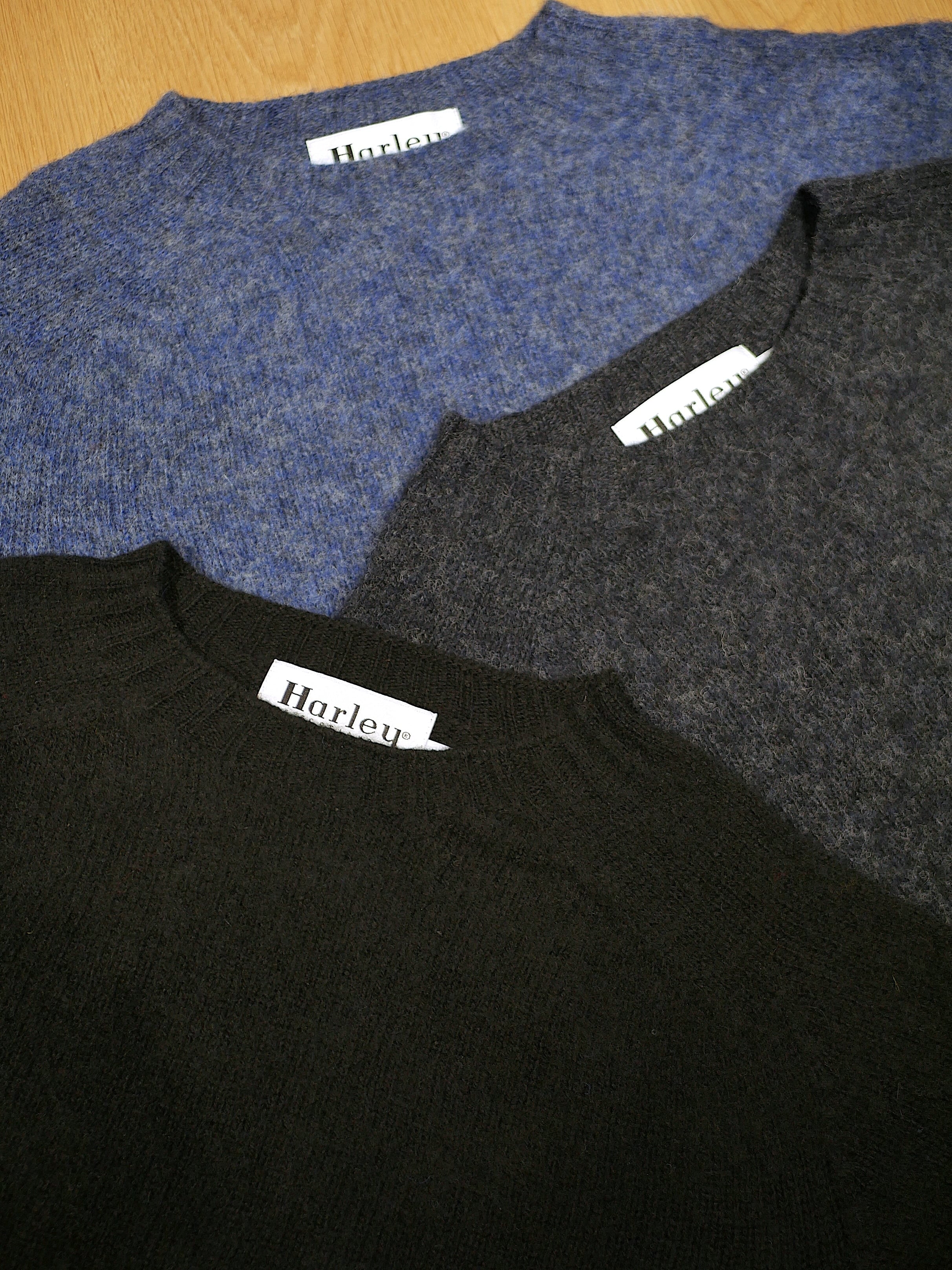 昨年に引き続き、今シーズンもスコットランドの老舗ニットメーカーHARLEYに直接オーダーをかけ、シンプルなクルーネックセーターを製作して頂きました。