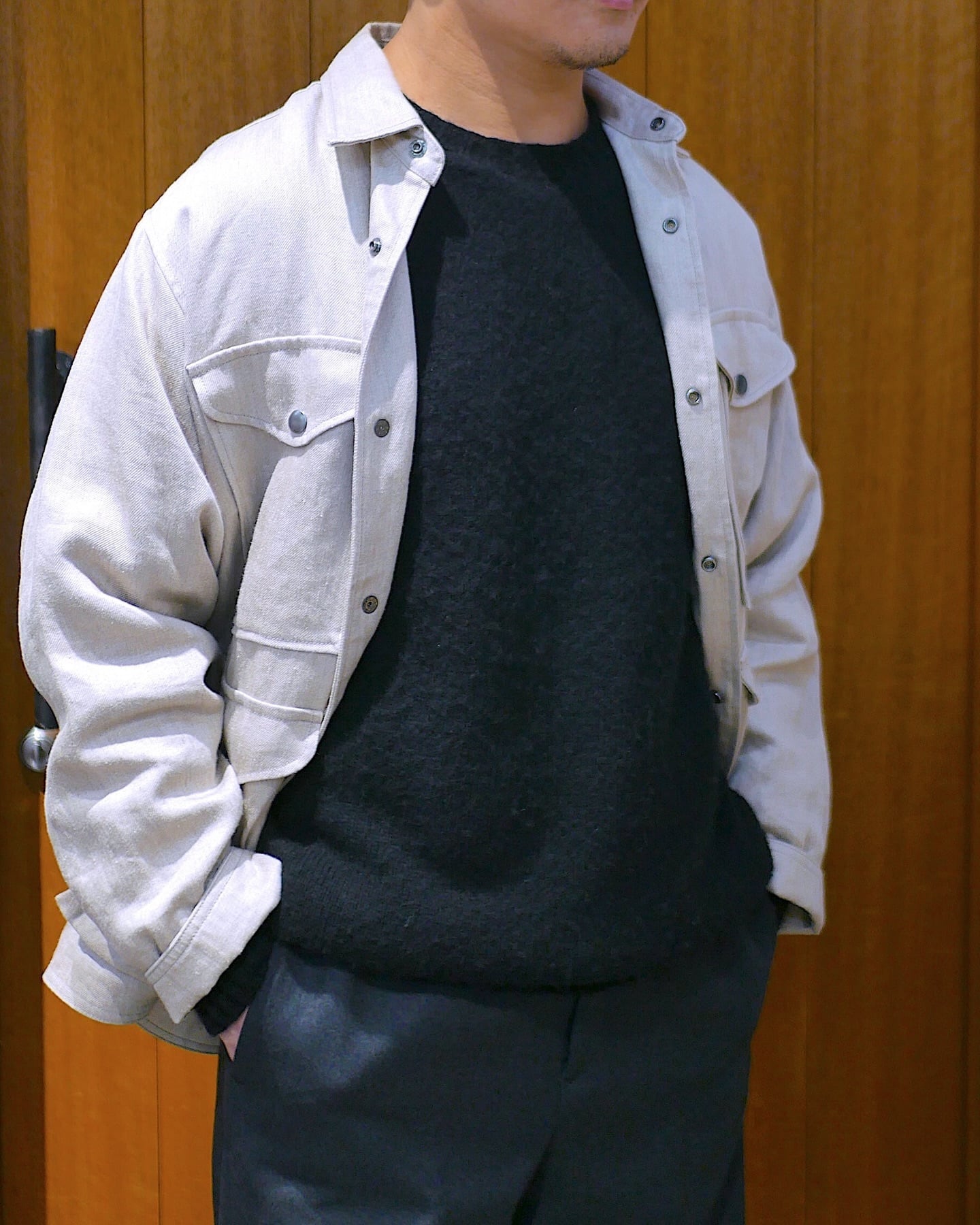 カジュアルにラフな感じで気倒してもいいし、自分はAURALEEやCOMOLIのコートの中に着たりしたいです。