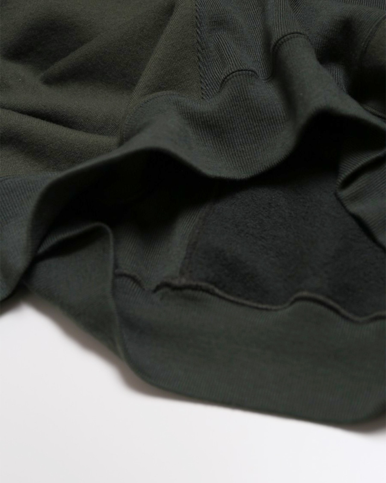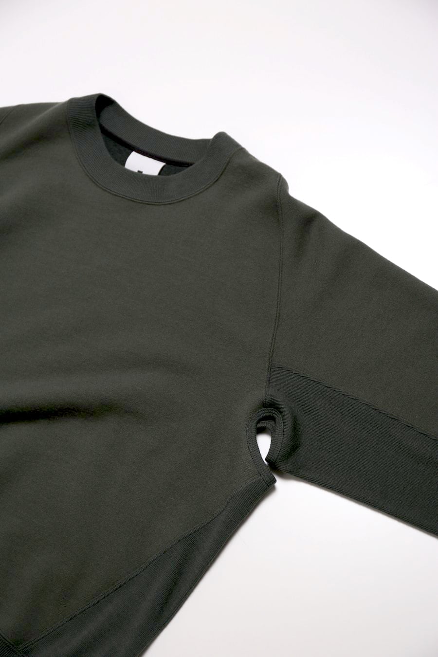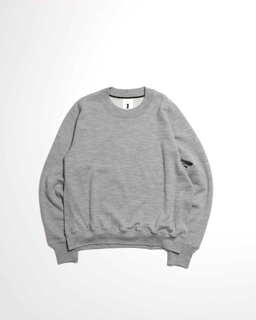 メリノウール100%の糸を使用した、裏毛 CREW SWEAT。