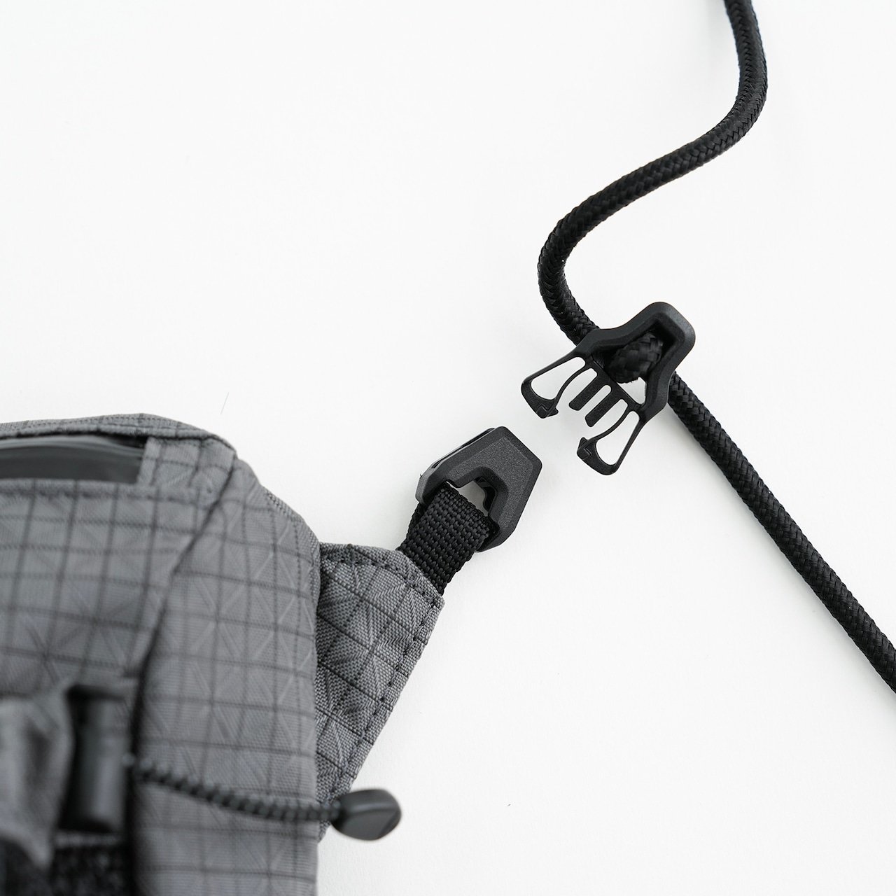 フロントポケット上部のリフレクターバンジーコードは、荷物が落ちてしまうのを防いでくれ、また夜間はリフレクターが反射します。