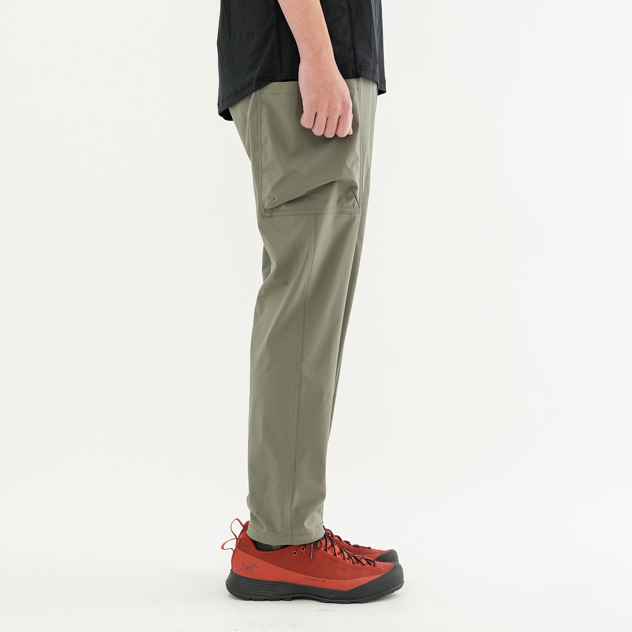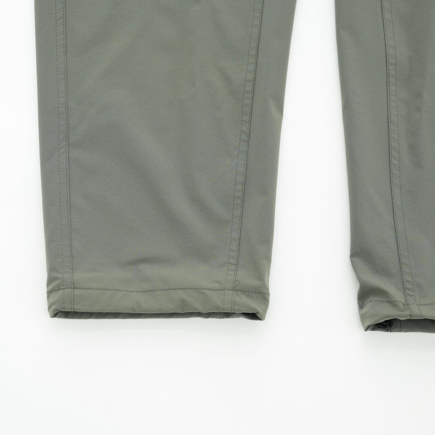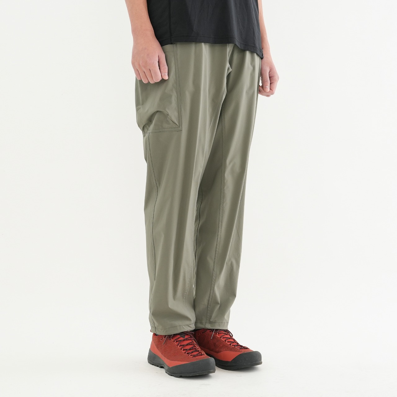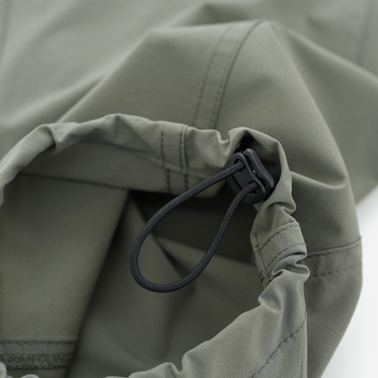 裾もストリングコードで絞れるので、シューズやサンダルなどによって、丈感やシルエットが変えられます。生地には冷感効果もあり、暑いシーズンも快適に過ごせます。