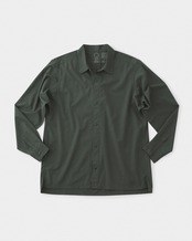 換気性に優れたワイドフィットと首元に熱のこもりにくいオープンカラーで、暑い時もヒートアップしすぎず、素早く袖をまくり上げたり、スナップボタンで換気したいポイントだけを開けたり、寒いときは襟を立ててボタンでとめたりと、山と道のトレイルシャツ独自のディティールで防風性と体感温度を自在にコントロールできます。
