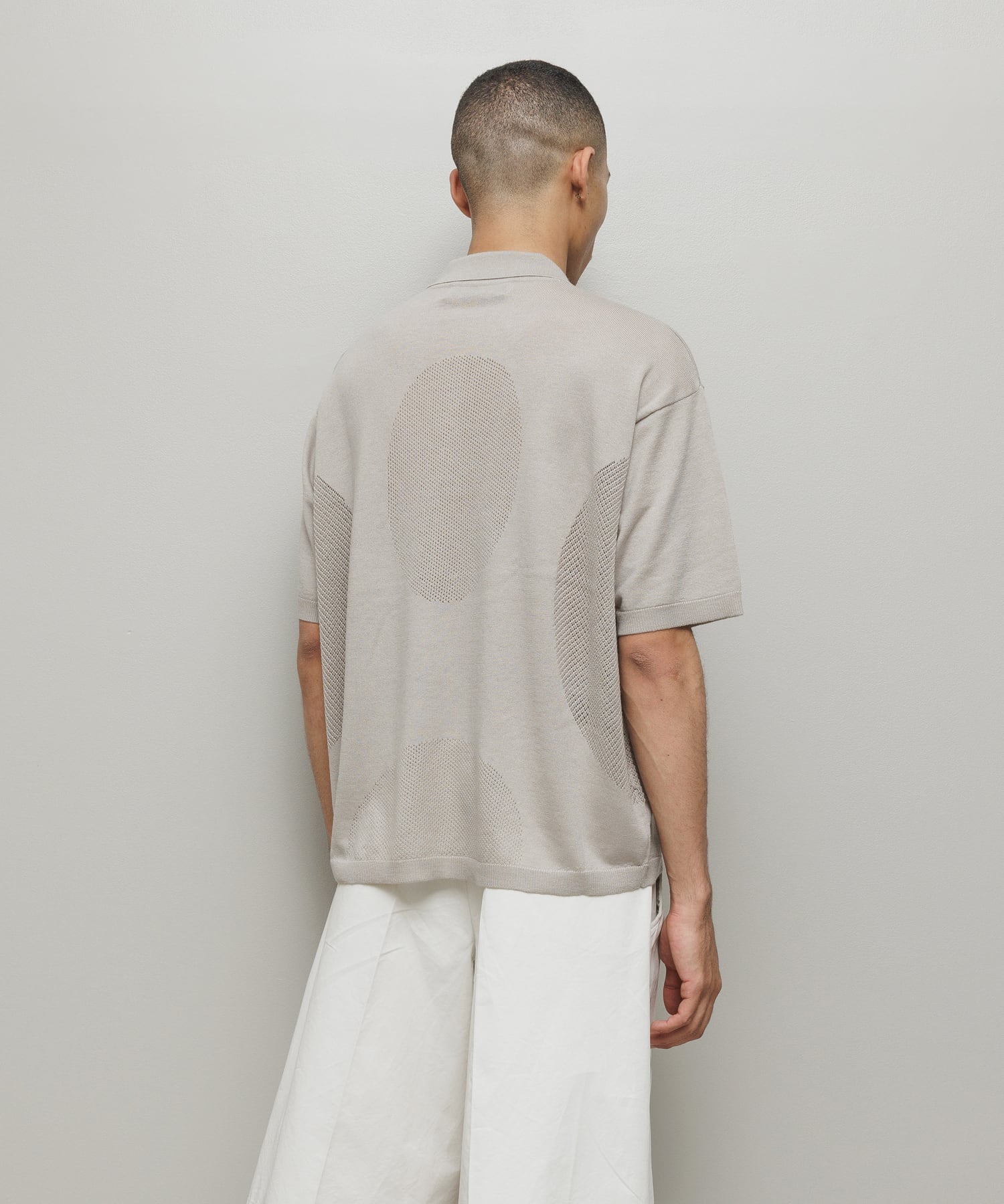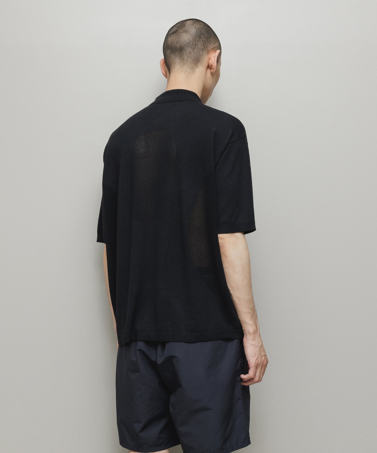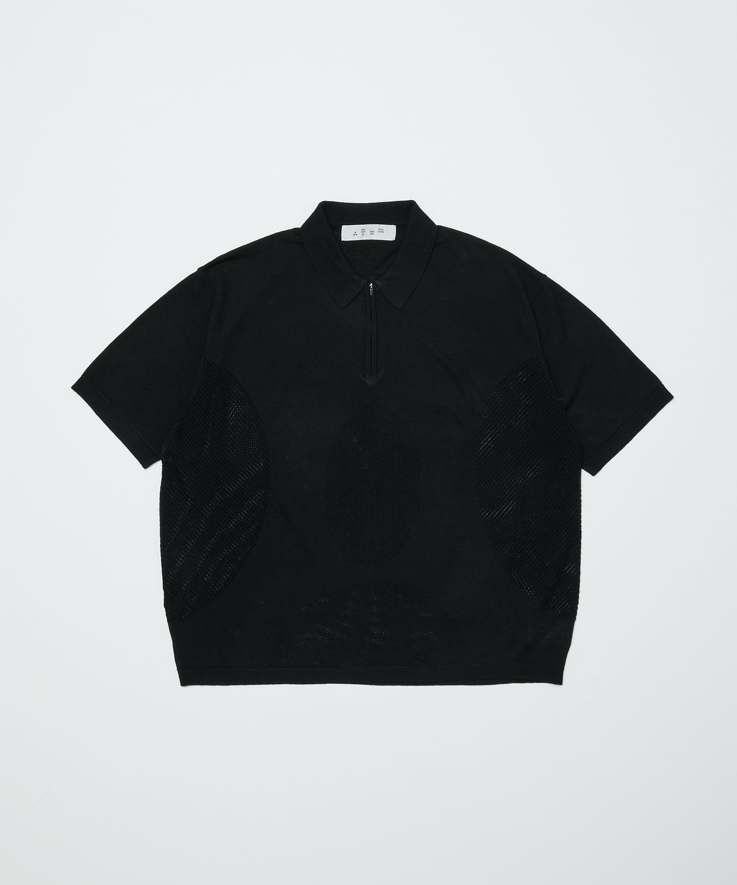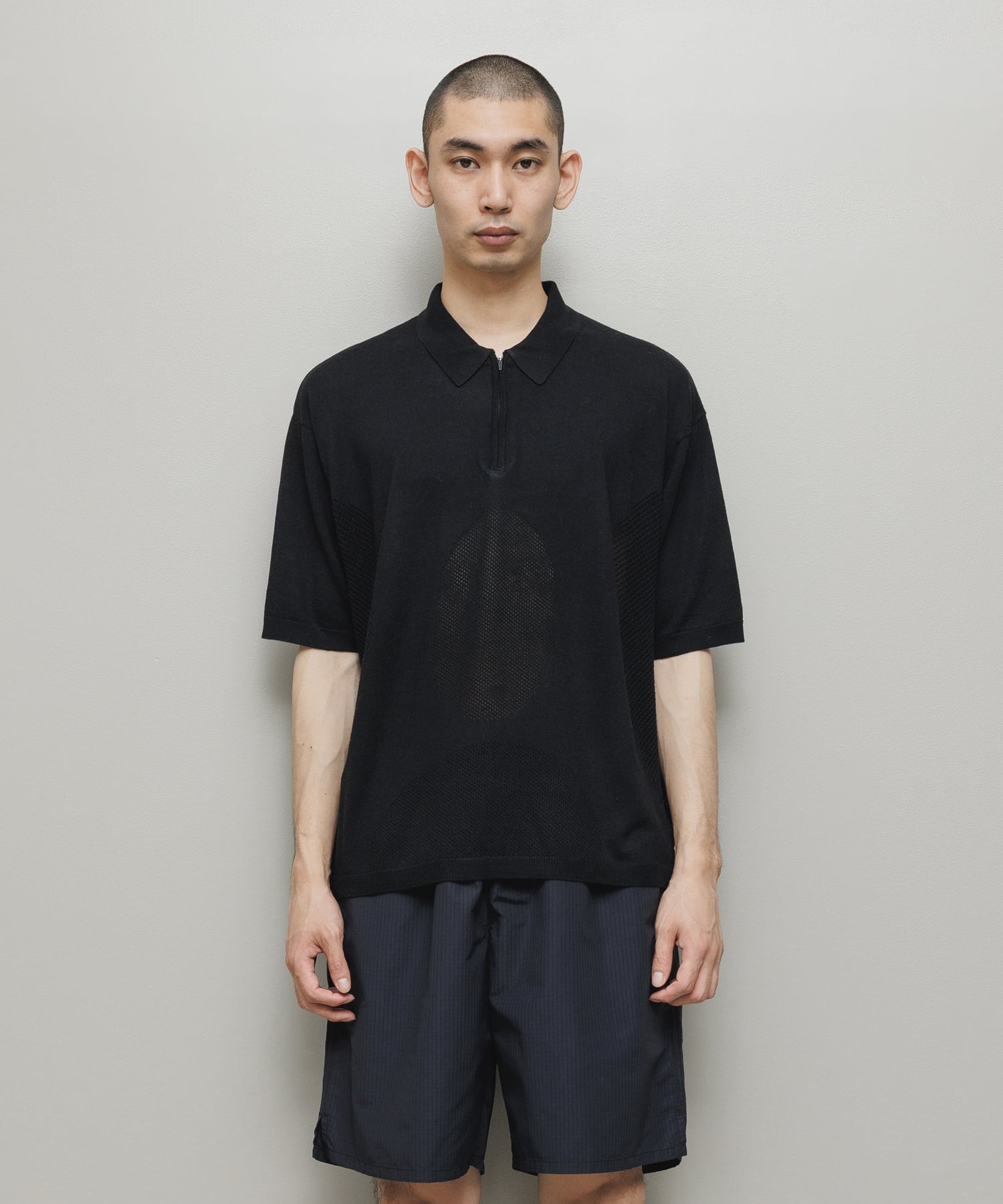 ハイゲージのメッシュジップアップニットポロ。ショートスリーブ。