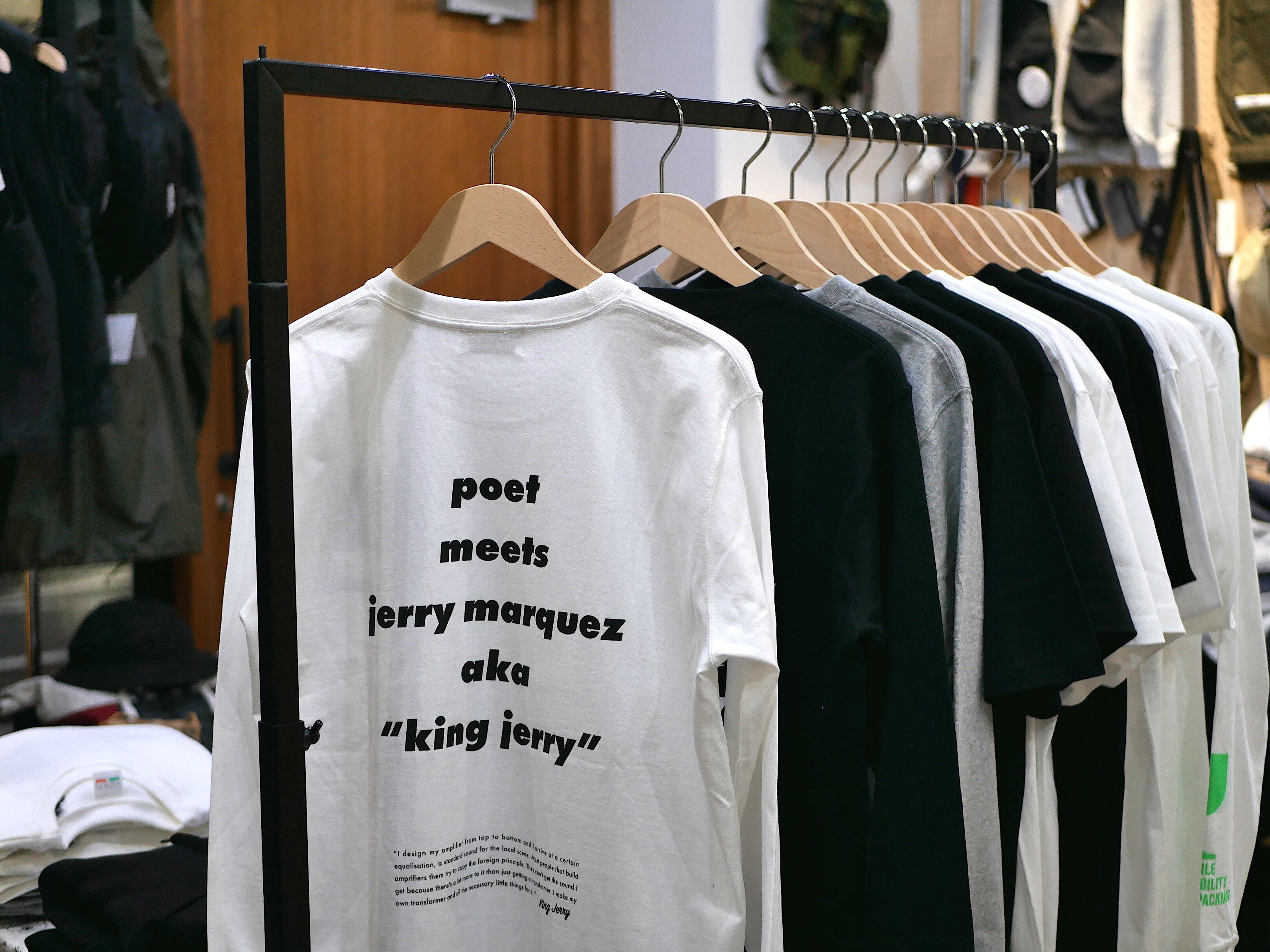ジェリー鵜飼氏のキャラクター「ジェリー・マルケス」とPOET MEETS DUBWISEとのコラボで生まれた「キング・ジェリー」をプリントした LONG SLEEVE T-SHIRTS。