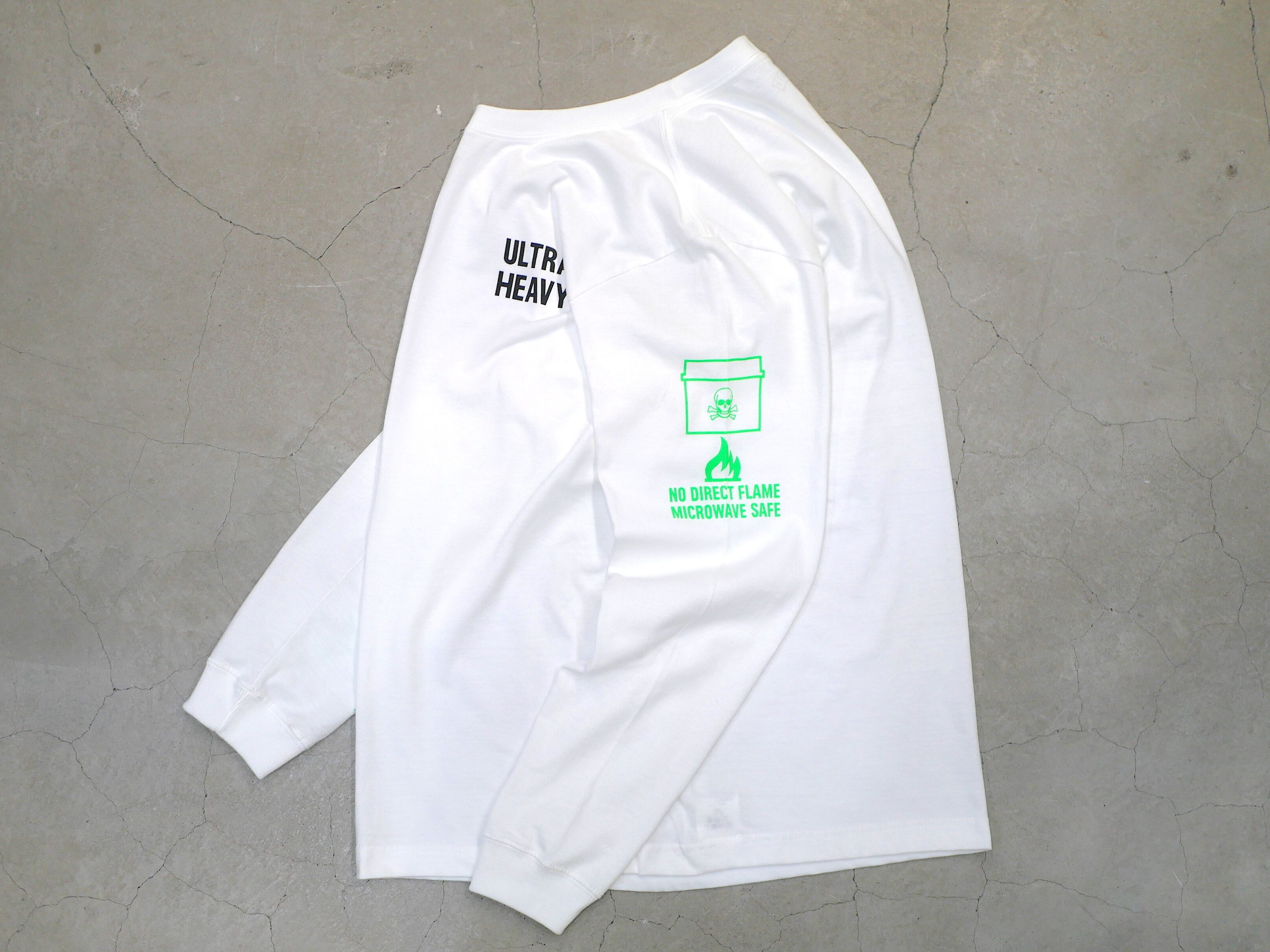 ウルトラ・ヘビーの発案者 立沢トオル氏が当時作ったキャンプ用の陶器セットが両腕にデザインされたロングスリーブ T シャツ。
