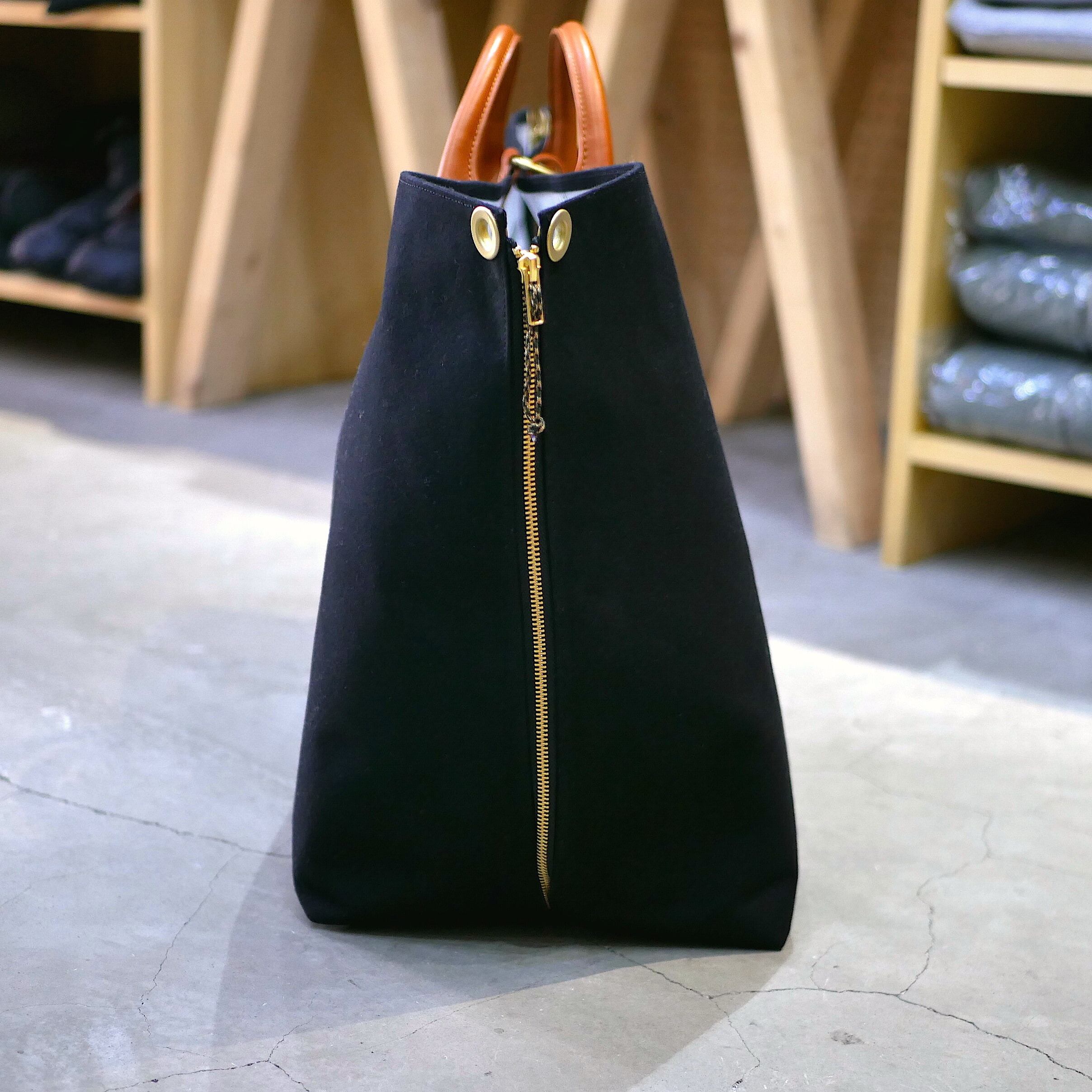 メインはトートバッグとしての使用で、ボトムのアジャスターを開放すれば、マチなしのフラットな大型トートバッグに変形する、マルチパーパスなトートバッグ。