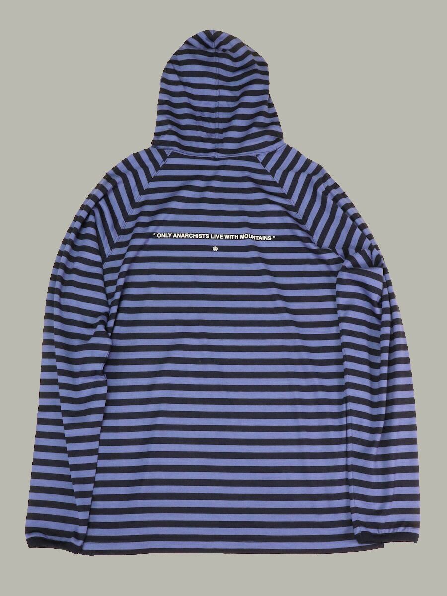背中には、ブランドの初期型スローガン”ONLY ANARCHISTS LIVE WITH MOUNTAINS”をプリント。