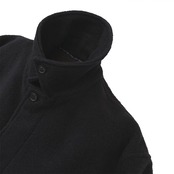 腰付きの襟の裏にはボタンを配しており、襟を立てて着用することも可能です。