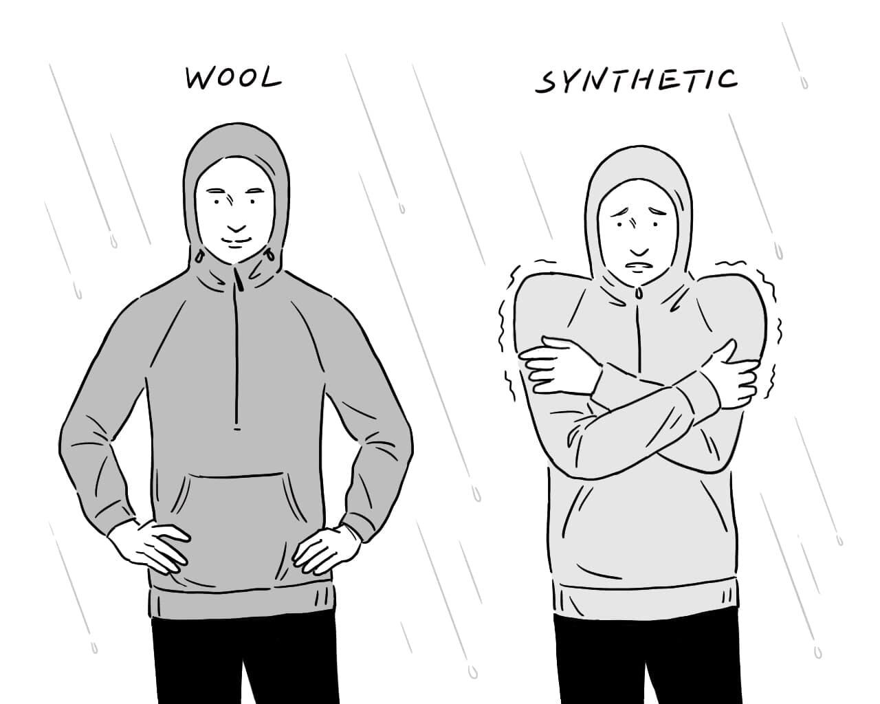 化学繊維が混合されていない100%メリノウールは、強力な消臭作用と優れた調温・調湿機能がハイキングを快適にします。