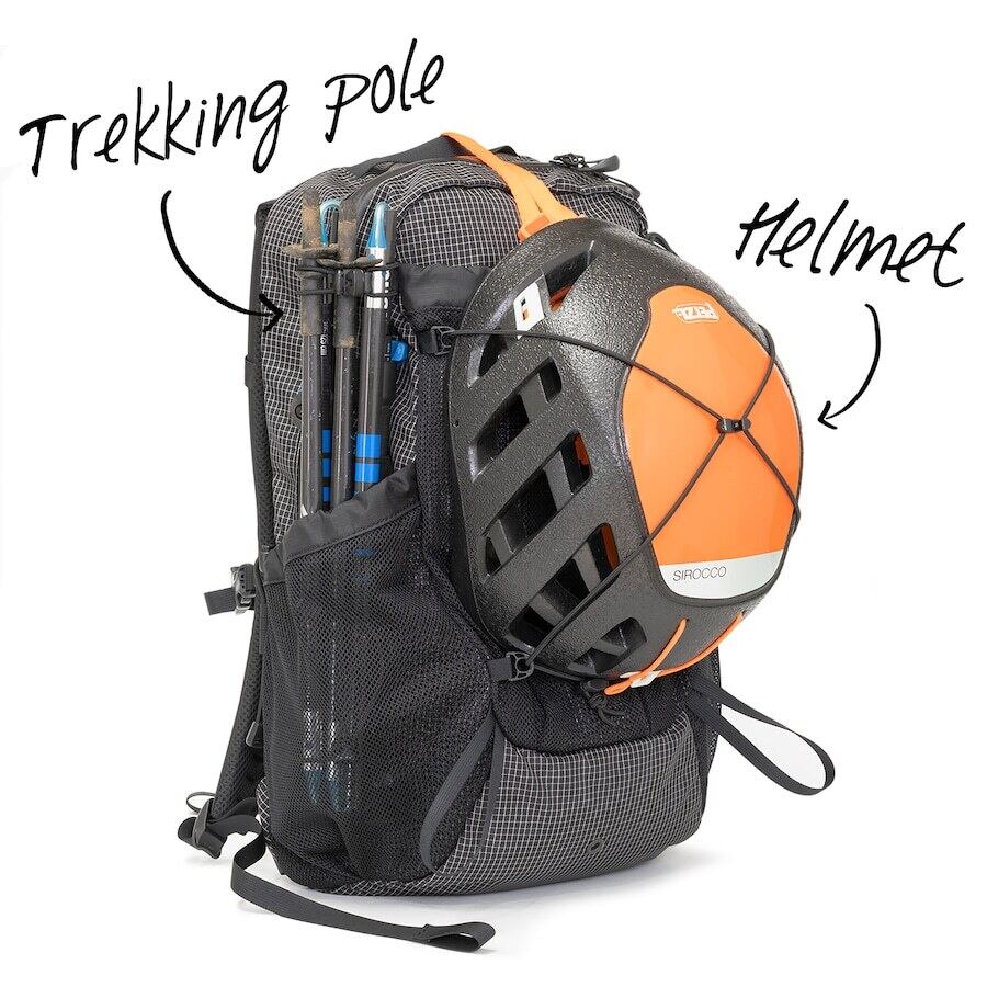 サイドポケットにはしなやかで耐久性のあるナイロン100%のメッシュ素材を使用しています。